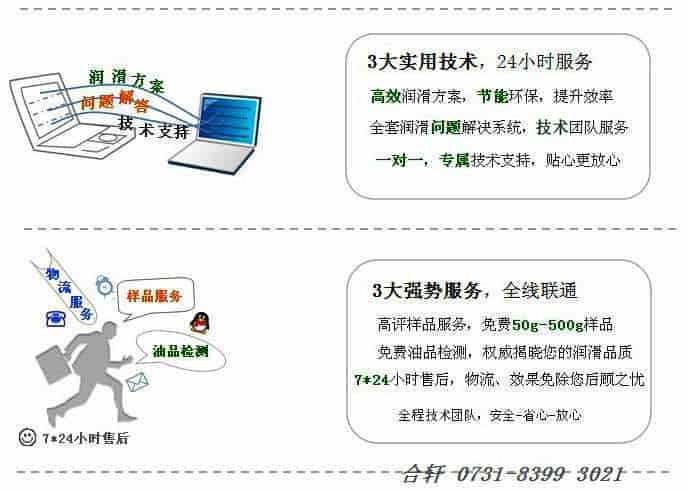 ????? 長沙合軒化工科技有限公司是一家集產品、技術、銷售、服務為一體的潤滑管理技術企業。以獨特的研發產品和先進的潤滑技術及管理享譽業界,產品齊全,擁有上千個品種,涉及到汽車制造、鋼鐵、化工、造紙、鐵路、電力、有色金屬、工程機械,通用制造、港口及水泥等領域;以解決高低溫、高轉速、高真空、重負荷、長壽命以及特殊工況、特殊介質下的摩擦、潤滑、冷卻、密封為特色;以高效、節能、環保為主導,解決和預防企業設備潤滑、生產工藝及產品質量中因潤滑不良而帶來的疑難雜癥的潤滑技術專家。