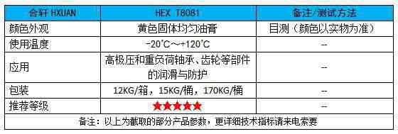 HEX T8081 高溫極壓鋰基潤(rùn)滑脂 銷(xiāo)售中心:0731-83993021