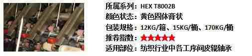 ??? 2、用于紡織、印染和造紙工業中承受潮濕蒸汽或酸堿工況的軸承的潤滑,如:清洗機、洗水機、絲光處理機、干燥機和高溫蒸汽閥門。可用于機床導軌、絲桿螺紋的