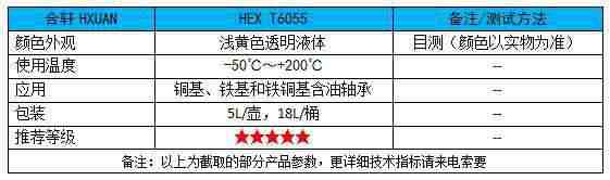 合軒耐高溫軸承潤(rùn)滑油HEX T6055系列針對(duì)軸承,含油軸承高溫下潤(rùn)滑需求,一款性?xún)r(jià)比良好的耐高溫軸承潤(rùn)滑油,有效對(duì)抗高溫高熱,低蒸發(fā)無(wú)味不結(jié)焦,并且具備長(zhǎng)的使用壽命,很好的解決軸承潤(rùn)滑出現(xiàn)的滴油/卡死/積碳變色問(wèn)題。