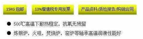 產品用途:500℃中、重負荷部件如:軸承、滑道、烤箱、鏈條等 包裝規格:15kg、1kg、500g樣品