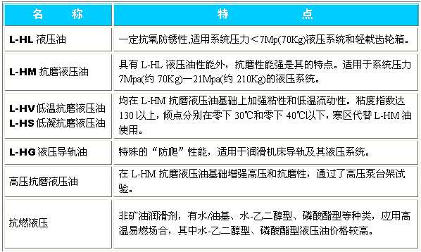 附注:我國礦物型和合成烴型液壓油的產品執行標準以GB11118.1-94(包括HL、HM、HG、HV、HS五個品種的 技術規格)為基準,具體根據國家最新出臺標準而定。